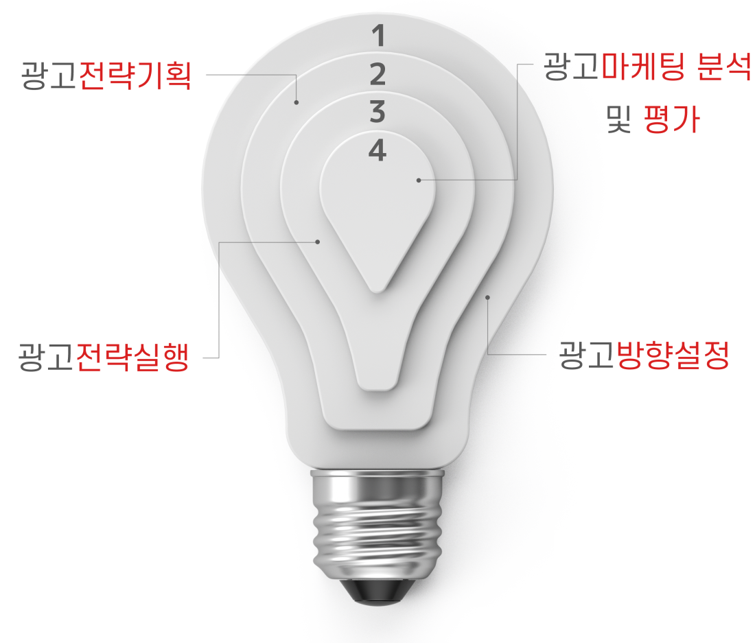 오랜 노하우와 분석자료를 기반으로 타겟의 NEED를 파악하여 최적의 매체선정 및 키워드 광고 전략제시, ROI를 고려한 전략수립